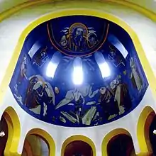 Maurice Rocher, élève de Maurice Denis et George Desvallières, est âgé de 28 ans lorsqu'il reçoit commande de la Direction des Arts Plastiques pour une peinture à fresque décorant la voûte en cul-de-four de l'abside de l'église. Le sujet proposé par l'artiste est Le Verbe et la Parole.