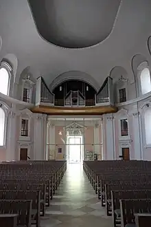 Le bâtiment précédent de l'église baroque actuelle était une église médiévale, construite au début du XIIe siècle. L'église du monastère remontait au Schottenkloster St. Egidien fondé à Ratisbonne, qui fut dissous en 1525. Les moines sont chassés par la Réforme et l'église passe au culte luthérien. Cette église était à l'origine une basilique romane à trois nefs et se retrouve probablement dans certaines parties de la chapelle eucharistique actuelle, qui n'a été voûtée qu'après 1200[1].