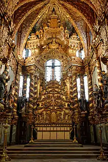 Dans la première moitié du XVIIIe siècle, la plupart des surfaces intérieures, y compris les murs, les colonnes, le toit et les chapelles latérales ont été revêtues de talha dourada baroque, boiseries sculptées et recouvertes d'or. Cet étalage de luxe était en contradiction avec l'idéal de pauvreté des ordres mendiants, notamment l'ordre franciscain. Cela "a même contraint les autorités religieuses à fermer un temps l'église au culte"[1].