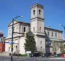 Une première église est construite dans ce quartier alors en rapide expansion, en 1902 avec une école paroissiale, dans un terrain offert par un brasseur local, catholique d'origine allemande, Gerard (Gerhard) Lang. L'église est consacrée à son patron saint Gérard. Elle s'avère bientôt trop petite et une seconde est construite[1] entre 1911 et 1913. C'est un édifice élégant sur le modèle d'une basilique romaine, avec une façade imitée de celle de Saint-Paul-hors-les-Murs. On remarque les statues de saint Gérard et de saint Joseph (avec l'église en miniature à ses pieds) sur la façade, œuvres du sculpteur Angelo Gatti. Des travaux d'agrandissement sont effectués dans les années 1930 et financés par une communauté alors florissante qui fait également construire un clocher en forme de campanile néoclassique italien de 110 pieds de hauteur.