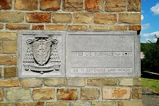 La première pierre en fut posée par le cardinal Van Roey le et l'édifice fut consacré le par Mr Schoenmakers, évêque auxiliaire de Malines[11] :