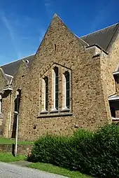 L'église est édifiée en moellons de grès et pierre bleue[5], et couverte d'ardoises.