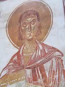 Les images des saints représentés sur les fresques de l'église Saint-Georges sont d'une grande sévérité, voir de dureté. Certains visages expriment une attitude belliqueuse. La position du buste est frontale comme dans les icônes. Le sujet regarde vers le spectateur de manière presque hypnotique. Ils semblent doués de pouvoirs magiques et en face de leur attitude les croyants n'ont plus qu'à baisser la tête[14]. L'attrait pour le tracé de la ligne ornementale, dont la scène de Saint-Georges et le dragon est un bel exemple, se manifeste de manière plus évidente encore dans l'interprétation des visages. Par d'épais rehauts, les artistes élaborent les traits des visages : le front, la racine du nez, le menton, le cou. Ces lignes de rehauts articulent l'espace en petites unités. Le visage du Roi Salomon est lui entièrement éclairci et les éléments décoratifs n'apparaissent dès lors, non pas dans les zones claires, mais dans les zones obscures. Par analogie à la photographie on pourrait parler ici d'une substitution du négatif au positif. Ces maîtres attirés par la ligne, le sont tout naturellement aussi pour le dessin ornemental[15].