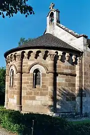 L'église possède un très beau chevet à grand appareil très régulier. Ce chevet est constitué d'une abside semi-circulaire unique dont la maçonnerie est rythmée par de puissantes colonnes engagées.