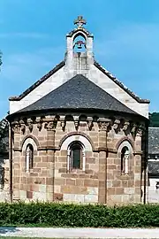 L'abside est couronnée d'une arcature composée d'une série d'arcades supportées par des modillons figurant des visages humains très expressifs.