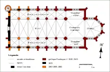 | Autres campagnes de travaux | 1867-1869 (voûtes de la nef, premières travées des bas-côtés) ; 1881 (tourelle d'escalier) ; 1893 (sacristie) |