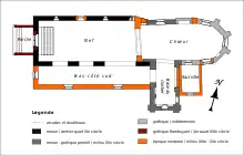 | Autres campagnes de travaux | 1er quart XVIe siècle (portail et porche) ; XVIIIe siècle (bas-côté et étage de beffroi du clocher) | ||