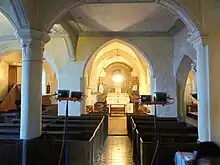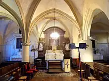 Chapelle baptismale, vue vers l'est dans la base du clocher.