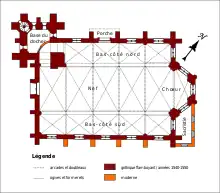 | Autres campagnes de travaux | années 1870 (voûtes de la nef, remaniement des baies) |