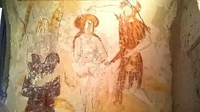 - Deux statues de pierre polychrome du XVIe siècle représentent l'éducation de la Vierge [4] et sainte Catherine d’Alexandrie[5].