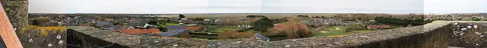 La tour faisait partie d’un réseau d’églises fortifiées cotentinoises[35] qui à l’instigation des instances dirigeantes devaient permettre de contrôler et d’alarmer les populations contre d’éventuelles invasions. De sa position, à treize mètres au-dessus du niveau de la mer, il était possible de surveiller les allées et venues dans le havre, mais également les flottilles circulant sur le canal de la déroute, entre les côtes cotentinoises et Jersey.