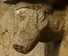 Sur trois modillons, un loup est sculpté. Sur l’une de ses trois représentations, il tient dans sa gueule un agneau, symbole de la pureté et du Christ. Contrastant avec la bienveillance des autres bêtes sauvages, il est ici l’image du Mal, terrassant le Bien. Un message est alors véhiculé aux fidèles par la sculpture : la tentation du diable et du pêché est incessamment présente. Ce serait alors en entrant dans l’église se confesser et prier que le fidèle pourrait se laver de ses péchés.
