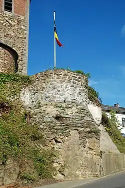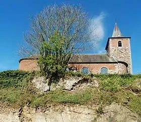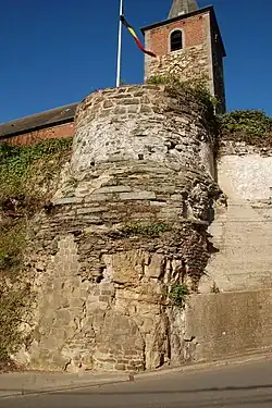 L'église domine le village de sa silhouette, dressée sur un escarpement rocheux délimité par la Grand-Place, la place du Peuple et la rue des Hayeffes.