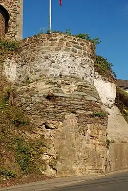 Elle est entourée de l'ancien cimetière, qui a sans doute été fortifié, comme le laisse penser une tour d'angle semi-circulaire[1] située au nord-est, le long de la place du Peuple.