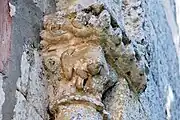Le culot reçoit la retombée commune des archivoltes des arcades géminées. Il rajoute du sens à l'imagerie de la fenêtre.
