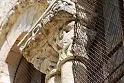 Trois baies de l'abside ont des chapiteaux historiés. La baie sud-est et l'axiale ont été obturées au XIXe siècle.