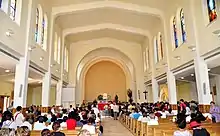 L'église est basée sur un bâtiment basilical classique. La nef est divisée en sept travées, elles-mêmes divisées intérieurement par des poutres et des piliers, la septième travée étant divisée vers l'abside semi-circulaire par un arc de triomphe en plein cintre.
