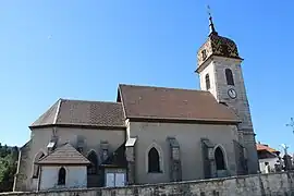 L'église est située dans la partie haute du village, sur la rive gauche du Doubs.