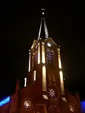 L'église a récemment bénéficié d'un nouvel éclairage afin de mettre en valeur son clocher.