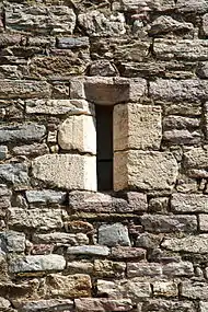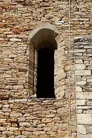 Sa face orientale est renforcée par de courts contreforts tandis que sa face méridionale présente une tourelle d'escalier polygonale percé de meurtrières.