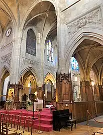En 1654, sans doute sous la direction d'Antoine Le Pautre - selon certains auteurs, cette intervention aurait été le fait de François Blondel - le chœur est mis au goût du jour : un décor végétal est sculpté dans les écoinçons des grandes arcades ; celles de l'abside sont dissimulées par un placage de pierre à pilastres corinthiens ; un nouveau maître-autel est accompagné d'un retable monumental en forme d'arc de triomphe. Un grand bas-relief figurant la Résurrection et des anges avaient été aussi sculptés par Gilles Guérin, mais ils ont aujourd'hui disparu.