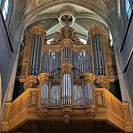 Le grand orgue de tribune fut achevé en 1685 par le facteur François Ducastel et son fils Hippolyte, il fut repris par Nicolas Collar entre 1725 et 1732, agrandi et transformé en 1767 par François-Henri Clicquot, reconstruit par Joseph Merklin de 1864 à 1867, puis restauré en 1942 par Jacquot-Lavergne et enfin par Jean Renaud en 1993. L'orgue comporte 42 jeux disposés sur 3 claviers. L'orgue de tribune a été classé au titre immeuble en 1945[17].