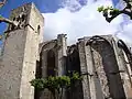 Une église est construite au XIIe siècle avec une tour-clocher défensive. Au XIIIe siècle, l'église est reconstruite plus au sud, côté est du cloître, en élargissant le nef unique. L'abside à 7 pans du chœur avec cinq chapelles entre les contreforts a été construite un siècle plus tard.