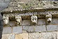 Les modillons de la façade ouest soutiennent une entablement décoré avec des cercles. Certains modillons sont érodés ou ont souffert de dégradations délibérées.