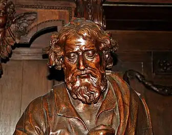 Ces confessionnaux sont ornés de remarquables statues en chêne représentant la Vierge, Marie Madeleine (représentée avec la tête de mort) et des apôtres.