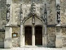 Par un contrat passé devant maître Thévenin à Paris, le , le sculpteur Simon Guillain s'engage devant le seigneur Méry de Vic de fournir un retable pour le maître-autel, en pierre de liais de Senlis et en pierre de Tonnerre, pour les statues et le tabernacle. Les travaux durent de début mars à fin juillet et coûtent la somme colossale de 1 800 livres. Un an plus tard, Méry de Vic commande le tableau de retable au peintre flamand Louis Finson, qu'il connaît déjà et qu'il apprécie beaucoup, et dont l'on sait qu'il séjourne à Paris entre mars et juillet 1615. Le seigneur offre encore « plusieurs ornements riches et complets », mais comme le dit Geneviève Mazel, les habitants ne se rendent sans doute pas bien compte de la valeur de ces dons. En 1619, un porche large et profond est plaqué devant la façade. Geneviève Mazel dit qu'il achève l'église, mais il dissimule et mutile en partie le portail gothique flamboyant édifié seulement quatre-vingt-deux ans plus tôt, qui n'est donc déjà plus apprécié. Les dépenses s'élèvent à 312 livres, sans compter les lattes, les ardoises et le plomb, qui sont donnés par le seigneur[17].