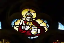 - Verrière no 6 (chevet du collatéral sud), à deux lancettes : Dieu le père au tympan, le reste de la verrière datant de la fin du XIXe siècle.
