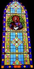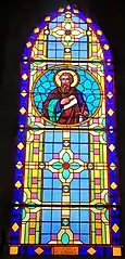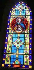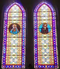 Les fenêtres sont garnies de vitraux réalisés par les ateliers Cagnart d'Amiens, dans le choeur :