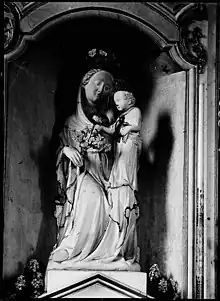 Elle contient une Vierge à l'Enfant en pierre polychrome[3],[4].