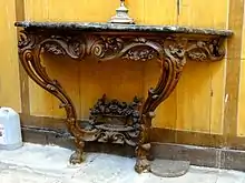 Parmi le mobilier de l'église, un seul élément est classé monument historique au titre objet, à savoir une crédence de style Louis XV. Deux autres objets classés ont disparu, en l’occurrence un bénitier portatif en cuivre du XVIe siècle, et un haut-relief en bois du XIVe siècle, représentant la Descente de croix et provenant d'un retable démantelé[10]. Le mobilier est resté assez complet depuis le XIXe siècle, mais ne comporte que quelques rares éléments antérieurs à la Révolution. Le plus remarquable est le maître-autel avec son petit retable. Le maître-autel, en bois, est orné d'un bas-relief représentant l'Agnus Dei couché sur le Livre aux sept sceaux (qui ont été arrachés), entouré de rayons de lumière. Le retable, également en bois, est de style Rocaille. Il se compose d'un corps central muni d'une niche abritant une statuette de l'Immaculée Conception, flanqué de deux ailes. L'ensemble repose sur un soubassement à deux gradins, qui intègre au milieu le petit tabernacle, dont la porte affiche également l'Agnus Dei sur le Livre aux sept sceaux. La niche, en plein cintre, est surmontée de deux chérubins en buste sortant d'une nuée, et des têtes chérubins apparaissent également en haut des montants de gauche et de droite, et en haut du couronnement en forme de coupole, qui est sommé d'un petit crucifix. Des flammes se profilent au pied de la coupole. Le décor est complété par des épis, des chutes de feuilles de vigne et grappes de raisin, ainsi que par des cartouches sur les ailes latérales et le soubassement, qui sont agrémentés de guirlandes ou de fleurs. La qualité de cette œuvre contraste avec la mauvaise facture du lambris du chœur.