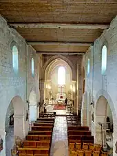 Intérieur, vue vers l'est ; à gauche, la sacristie.
