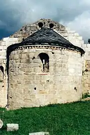 Le chevet est remarquable : percé d'une seule fenêtre à simple ébrasement, sans ornementation, il est surmonté d'une belle frise de dents d'engrenage qui rappelle celles des églises de Cerdagne (Hix, Estavar, Llo...) et du Conflent (Espira-de-Conflent).