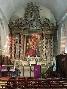 L'édifice abrite un maître-autel avec un retable muni de colonnes torses[A 1].
