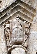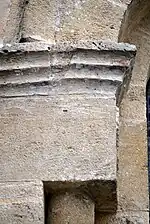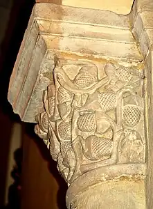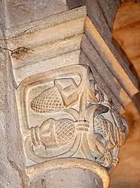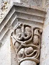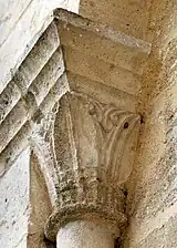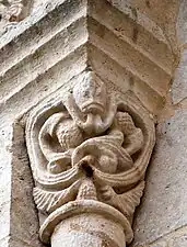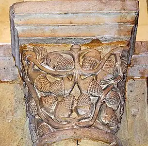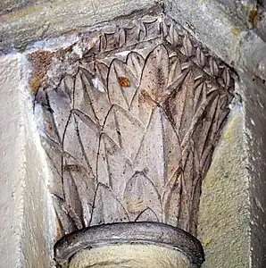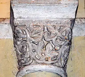 Le chapiteau sud de l'arc est décoré avec des feuillages.