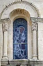 - Saint Jacques et saint Georges. Saint Jacques en pèlerin (côté gauche), saint Georges tient de la main droite une lance qui est plantée dans la gueule d'un dragon, la main gauche tient la palme du martyre (baie 15, côté droit).