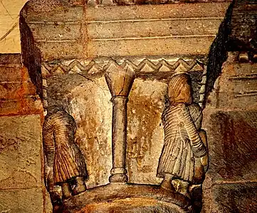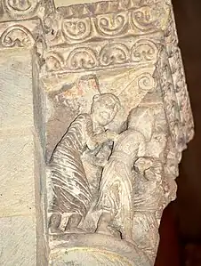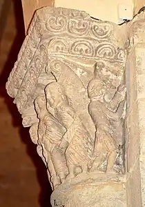 Le chapiteau de l'arc triomphal relate la deuxième épisode ; un chapiteau de l'abside relate le premier épisode.