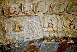 - Chapiteau N3 : les sirènes-oiseaux. La corbeille est très abîmée. Se discerne cinq petits êtres, parmi lesquels deux sirènes-oiseaux de sexe mâle, car barbus. Le tailloir est délimité par des dents de scie et, à l'angle, se trouve le masque d'un animal.