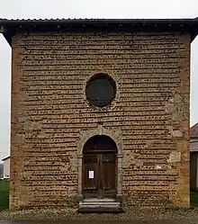Elle consiste en une petite église rectangulaire de type "grange"[1]. Les murs sont fabriqués en un appareillage dombiste classique (briques et galets)[2].