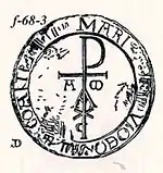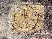 Le dessin[2] de Léo Drouyn, datant de 1857, montre une grande croix monogrammatique ligaturée à un petit x et sommée d'un A, ce qui induit la lecture latine Pax Christi.