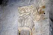 Le chapiteau a été sculpté in situ et le tailloir est, en partie, resté à l'état brut.