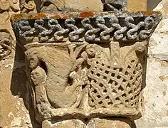 Le tailloir de cette double corbeille est couvert par des entrelacs sans fin. La deuxième corbeille est couverte par une magnifique dentelle de pierre.
