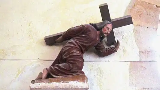 Classé MH ; - un Christ portant sa croix en bois polychrome du XVIIe siècle