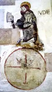 Classé MH, toutes deux du XVe siècle en pierre polychrome, offertes par les Rolin à l'église ; - une statue en pierre XVIe siècle de la Charité de saint Martin portant le collier de Saint-Michel