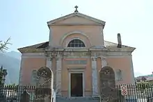 La nouvelle église est réalisée dans un style néo-classique dit « sarde »[Note 1],[5]. La façade est caractéristique avec des pilastres et une « corniche à modillons en marbre gris veiné »[5]. L'extérieur est réalisé, selon le cahier des charges, avec l'usage unique de la chaux produite par les fours de Cons-Sainte-Colombe[7].