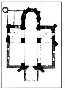 À l’origine, au XIIe siècle, l’église comporte une nef unique terminée par une abside polygonale (sept pans) à l’extérieur et semi-circulaire à l’intérieur. Deux chapelles, voûtées d'ogives, formant transept, ont été rajoutées à la fin du XIIIe siècle. La chapelle sud, construit à l’identique de celle du nord, est percé d’une baie ogivale du XIIIe siècle.