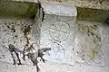 Les trois modillons sont érodés, mais on peut identifier un animal, peut-être un bouc et une tête humaine.